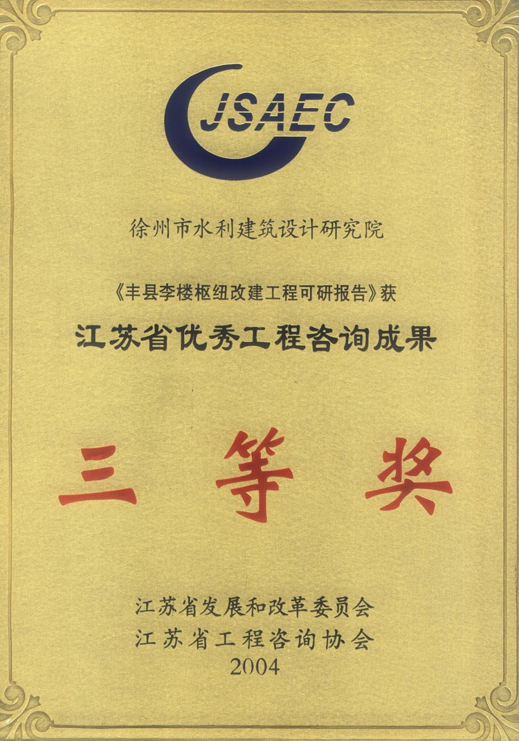 《豐縣李樓樞紐改建工程可研》省咨詢(xún)成果獎(2004)